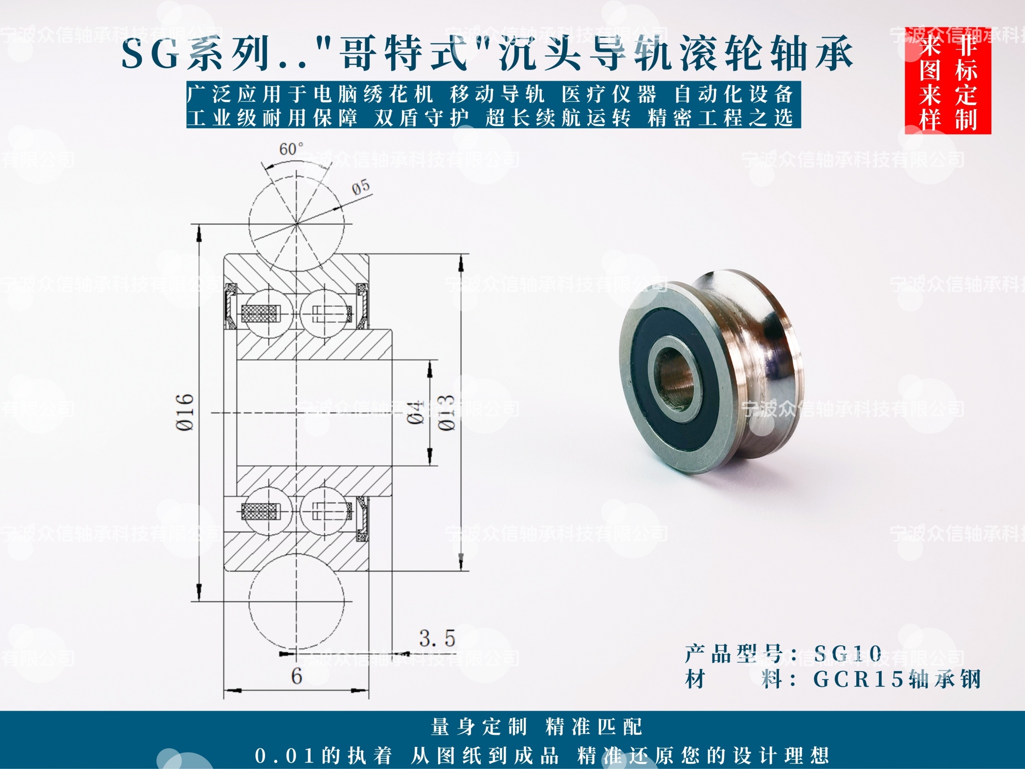 宁波众信轴承科技有限公司专业生产SG10轴承,我公司有现货销售.需要SG10轴承的图纸、结构、报价及配合安装尺寸等资料请联系我司销售人员!